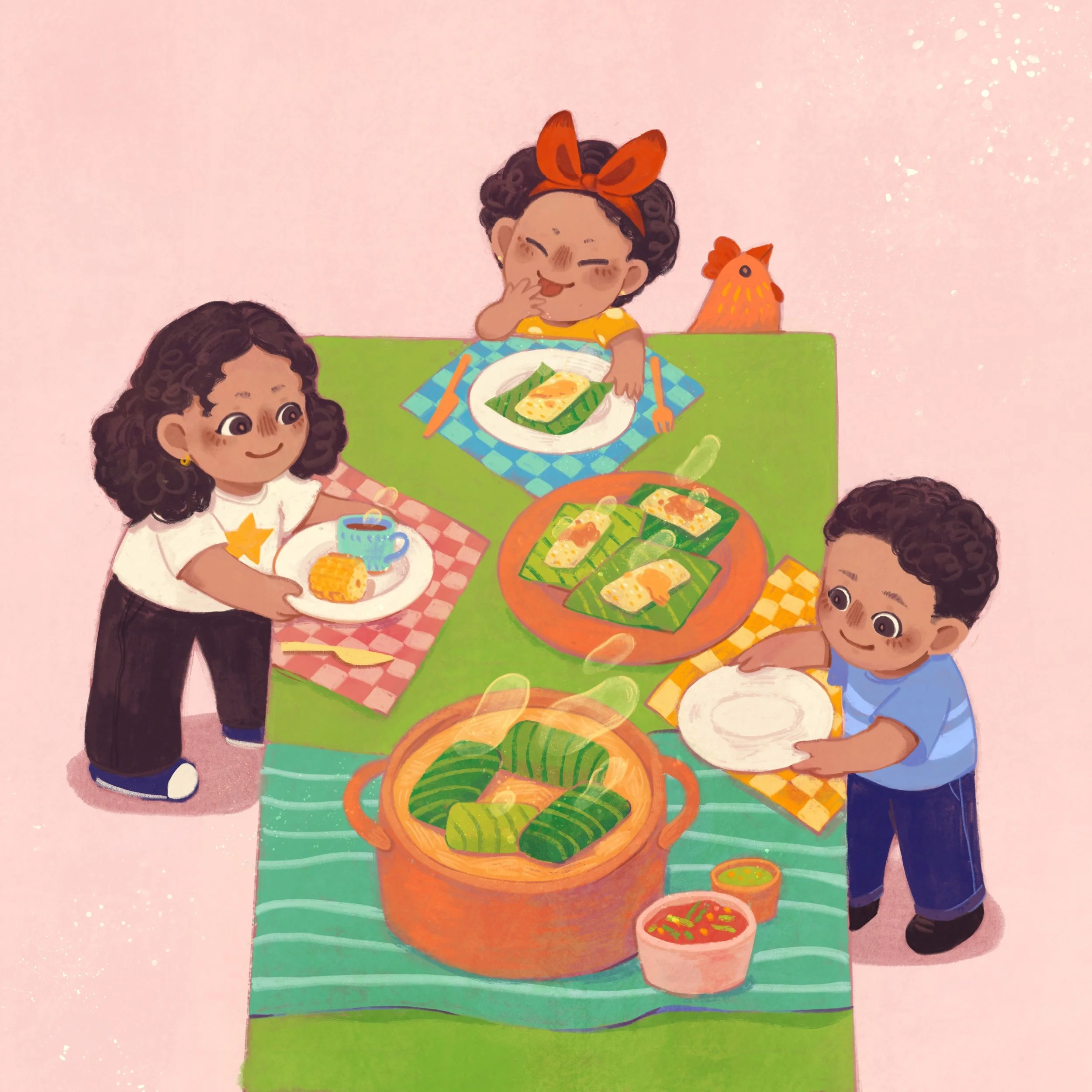 Un, dos, tres, en El Salvador was created in collaboration with an author for a self publishing children’s book. is a counting book set in a Salvadoran cultural context. The book introduces numbers through everyday scenes, objects, and environments inspired by local life. Each spread focuses on a number while also presenting small narrative moments and details for children to discover.